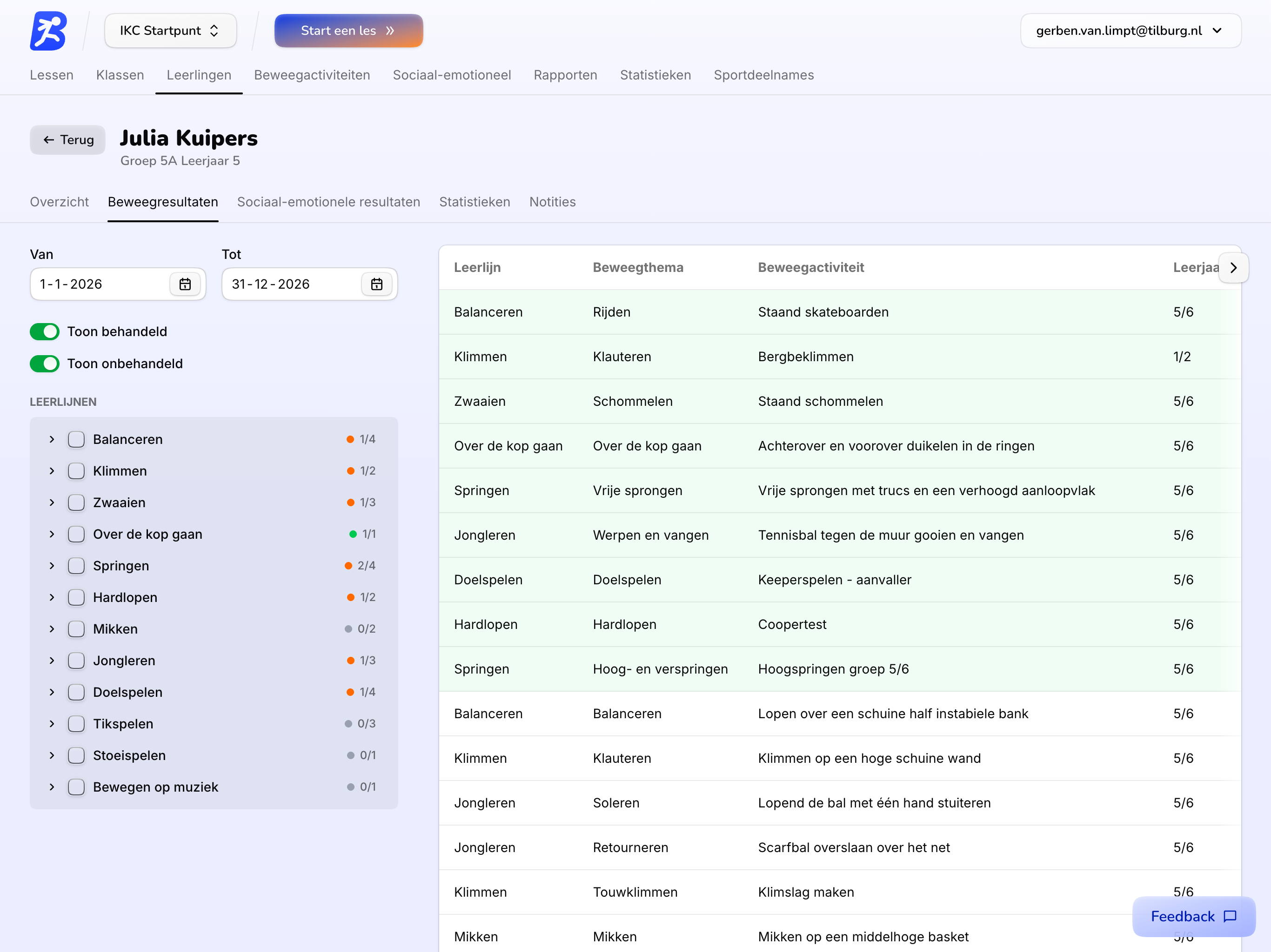 Gebruik Beweegactiviteiten wanneer je inzicht wilt in het bestaande aanbod of wanneer je jouw lessen verder wilt afstemmen op de behoeften van je groep. Zo zie je direct waar kansen liggen en voeg je snel nieuwe doelen toe.